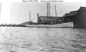The fishing vessel Dolphin, probably sometime between 1917 and 1919 while she was under consideration for use as a U.S. Navy patrol vessel.