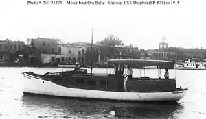 - "Ora Belle (American Motor Boat, 1911). Later renamed Dolphin. Served as USS Dolphin (SP-874) in 1918". Online Library of Selected Images: Civilian Ships. Naval History & Heritage Command.