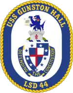 USS Gunston Hall (LSD-44) is a Whidbey Island-class dock landing ship of the United States Navy. She was the second Navy ship to be named for Gunston Hall, the Mason Neck, Virginia, estate of George Mason, one of Virginia's Revolutionary figures, and "Father of the Bill of Rights". Gunston Hall was laid down on 26 May 1986, at the Avondale Shipyards, New Orleans. The ship was launched on 27 June 1987, commissioned on 22 April 1989 and assigned to Naval Amphibious Base Little Creek.