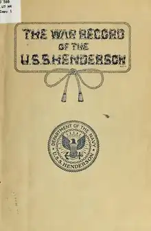 This article incorporates text from this source, which is in the public domain. - ↑ Fry, Henry (1919). The war record of the U.S.S. Henderson. Brooklyn Eagle Press. pp. 25–27. Retrieved 29 July 2017.