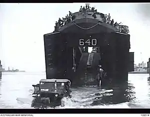 During World War II, LST-640 was assigned to the Asiatic-Pacific theater. She then participated in the Palawan Island landings from 1 to 2 March 1945 and Visayan Island landings from 25 to 28 March and 2 to 4 and 7 April 1945. After the war, she was transferred to China for occupation service in April 1946 until her decommissioning.[1]