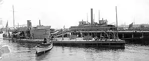 A week later, the new monitor joined the North Atlantic Blockading Squadron at Newport News, Virginia. She performed blockade duty in the Hampton Roads-Virginia Capes area, and on the night of 10 June joined a flotilla under Rear Admiral Samuel Phillips Lee in an expedition up the James River to assist Army troops. Returning to Newport News two days later, she resumed blockade duty until sent back up the James with seven other Union warships to threaten Richmond, Virginia, the Confederate capital. In the wake of the Battle of Gettysburg, the movement was designed to divert Confederate strength from General Robert E. Lee's Army of Northern Virginia which had invaded the North and imperiled Washington, D.C. The expedition caused the South to evacuate Fort Powhatan, leaving no defenses on the James below Chaffin's or Drewry's Bluffs, some 8 miles (13 km) from Richmond. The situation relaxed as the Confederate Army retreated across the Potomac River, and the Union warships dropped down river to Hampton Roads. On the morning of 23 July, Lehigh, towed by Circassian, got underway north and arrived New York City two days later for repairs. In August 1863, commanded by Commander Andrew Bryson, she headed south and joined the South Atlantic Blockading Squadron off Charleston, South Carolina. The monitor took part in the attacks on Fort Sumter of 1 and 2 September, being struck several times; engaged Sullivan's Island 7 September; Fort Moultrie 8 September, receiving 29 hits; covered a landing party attacking Fort Sumter 9 September; and from 27 October to 20 November engaged Fort Sumter almost daily, running aground 16 November off Sullivan's Island under heavy enemy fire. Five of Lehigh's sailors were awarded the Medal of Honor for helping to free the vessel during this incident: Landsman Frank S. Gile, Coxswain Thomas Irving, Gunner's Mate George W. Leland, Landsman William Williams, and Seaman Horatio Nelson Young.[2][3]