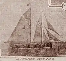 On March 30, 1896, 1896, the Liberty was launched from the John Bishop shipyard, to take the place of the ill-fated pilot-boat D. J. Lawlor, No. 3. The boat was built for pilots James Murdock, John H. Low, C. K. Nelson and John Ward. She was 104 feet long, 118-tons and cost $17,000. She was built to beat the popular Hesper.[7][8]