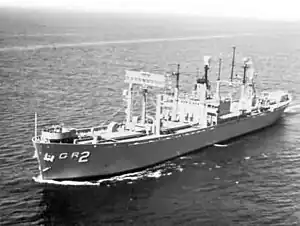 Lookout (YAGR-2) was laid down on 5 April 1945, under a Maritime Commission (MARCOM) contract, MC hull 3139, as the Liberty Ship Claude Kitchin, by J.A. Jones Construction, Panama City, Florida. She was launched 24 May 1945; sponsored by Mrs. F. D. Burge; and delivered 25 June 1945, to the United Fruit Company.[5][2]