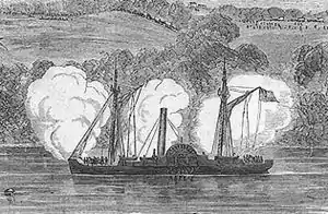 ![]() USS Mahaska shelling the Rebels at Harrison's Landing, 1 July 1862 | |