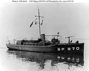5. 1 2 Naval History And Heritage Command (December 26, 2016). "Margo (S. P. 870) 1917–1918". Dictionary of American Naval Fighting Ships. Naval History And Heritage Command. Retrieved 9 September 2018.