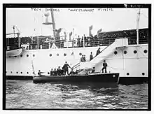 After duty as a dispatch boat protecting American interests in Santo Domingo, in 1906, Mayflower served as presidential yacht until 1929. On 22 July 1908, she collided with the American 211-grt schooner Menawa, in Long Island Sound; Menawa was lost, but all six people aboard her survived.[4]