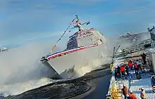 In 2002, the U.S. Navy initiated a program to develop the first of a fleet of littoral combat ships.[11] The Navy initially ordered two monohull ships from Lockheed Martin, which became known as the Freedom-class littoral combat ships after the first ship of the class, USS Freedom.[11][12] Odd-numbered U.S. Navy littoral combat ships are built using the Freedom-class monohull design, while even-numbered ships are based on a competing design, the trimaran hull littoral combat ships from General Dynamics.[11] The initial order of littoral combat ships involved a total of four ships, including two of the Freedom-class design.[11] Milwaukee is the third Freedom-class littoral combat ship to be built.