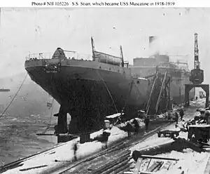 Muscatine, a refrigerator ship built in 1917 as Stian by Standard Shipbuilding Corps., Shooters Island, New York, for the Norwegian firm Salveson, Chr. & Co., was commandeered by the United States Shipping Board and transferred to the U.S. Navy on 28 April 1918. She was commissioned on 2 May 1918.