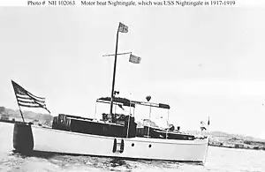 Nightingale, a motorboat built by C. W. Ferguson, Groton, Connecticut, was acquired by the Navy from J. L. Hubbard, Groton, 11 June 1917 and commissioned 29 June 1917 at Newport, Rhode Island.