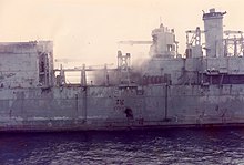 After salvage, she was returned to Destin, and unintentionally sunk with a Maverick missile launched from a United States Air Force F-4 Phantom II from Eglin Air Force Base in 1981. The missile's warhead entered on her starboard side approximately 13 feet (4.0 m) above the waterline, went through two decks, and exploded above the hull, leaving a hole approximately 3 feet (0.91 m) in diameter in her hull. The hole in the bottom of the ship was not noticed until the next day when U.S. Air Force personnel and Hughes Missile Systems Company engineers entered the ship for damage assessment. By this time, she was listing 16 degrees and all personnel were ordered off the ship. The wreck currently lies upright and intact in the Gulf of Mexico in approximately 330 feet (100 m) of water, 28 to 30 miles (45 to 48 km) due south of Destin at 29°55.101′N 86°34.952′W / 29.918350°N 86.582533°W.[3]