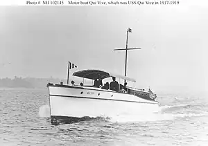- ↑ Department of the Navy Naval History and Heritage Command Online Library of Selected Images: Civilian Ships: Qui Vive (American Motor Boat, 1916). Served as USS Qui Vive (SP-1004) in 1917-1919.