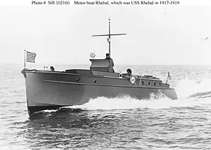 - ↑ Department of the Navy Naval History and Heritage Command Online Library of Selected Images: Civilian Ships: Rhebal (American Motor Boat, 1917). Served as USS Rhebal (SP-1195) in 1917-1919.