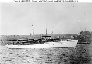 - ↑ Department of the Navy Naval History and Heritage Command Online Library of Selected Images: Civilian Ships: Talofa (American Steam Yacht, 1910). Served as USS Talofa (SP-1016) in 1917-1919