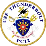 USS Thunderbolt (PC-12) is the twelfth Cyclone-class patrol ship. Thunderbolt was laid down 9 June 1994 by Bollinger Shipyards, Lockport, Louisiana, and launched 2 December 1994. She was commissioned by the United States Navy on 7 October 1995.
