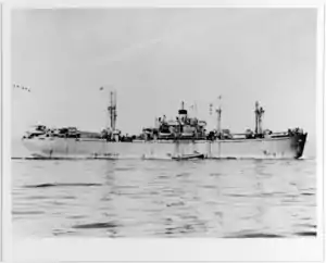 The ship loaded combat cargo at Manus and got underway for Hollandia on 7 November, to rendezvous with a convoy proceeding to the Philippines. She arrived at Leyte Gulf on 19 November, and began discharging supplies. During her visit there, Japanese planes frequently attacked Allied shipping; and, during a raid on Thanksgiving Day, four of her men were wounded by friendly antiaircraft fire.[3]