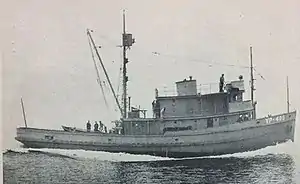 She was laid down as a seiner[2] at the Tacoma shipyard of the Tacoma Boat Building Company.[1] On 24 May 1942, she was acquired by the U.S. Navy[1] while still being built[2] and completed later in the year.[1] She was designated as a Yard Patrol Craft (YP) and assigned to the 13th Naval District.[2] Her commanding officer was Lieutenant Commandeer Vernon Johnson.[2] She was one of the initial ships assigned to Ralph C. Parker's Alaskan Sector of the 13th Naval District colloquially known as the "Alaskan Navy".