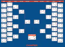 Starting with a round of 32, teams are matched up and the winner of each match proceeds to the next round until a champion is determined.