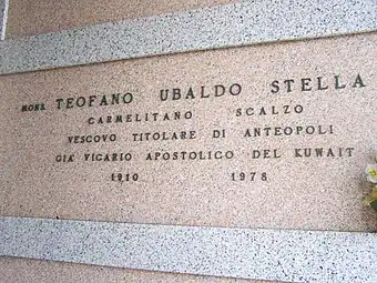 - ↑ "Welcome to AVONA (Bishop Ubaldo Teofano Stella, OCD, First Vicar Apostolic of Kuwait)". www.avona.org. Retrieved 2023-02-15.