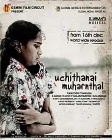 Uchithanai Muharnthaal[needs translation] is a 2011 Indian Tamil-language film directed by Pugazhendhi Thangaraj and assisted by Prashanth Ramamurthy. The plot revolves around a 13-year-old Sri Lankan Tamil girl, portrayed by child actress Neenika.[1] The film also stars Sathyaraj, Seeman and Sangeetha, while featuring music scored by D. Imman. The film released on 16 December 2011,[2] delayed from August.[3]