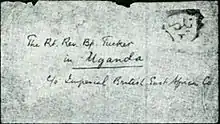 Handstamp of Unyoro on a cover addressed to Bishop Arthur Tucker of the Church Missionary Society.