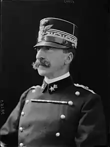During 1895, while carrying out the post of Chief of Staff of the XI Army Corps, he was assigned to the expeditionary force which, under the leadership of General Oreste Baratieri,[2] had to face the war with Ethiopia. Landing in Massawa on January 2, 1896 , he was given the command of the 2nd African Infantry Regiment,[3] framed in the 1st Brigade under the command of General Giuseppe Arimondi.[4] As soon as he took office, he immediately brought back a very negative impression of the colonial environment, which seemed to him dominated by arrival and a guilty underestimation of the enemy forces. His fears were confirmed during the Battle of Adwa,[2] which took place on March 1, 1896.[2] The regiment under his command was engaged in combat on unknown terrain[5] and was completely unfavorable,[5] against an enemy superior in number,[6] being practically destroyed. He was one of the few surviving officers of the battle, escaping death thanks to his energy. For his behavior during the battle, he was decorated with the Knight's Cross of the Military Order of Savoy. Returning to Italy on March 1, 1897,[7] exactly one year after the battle, he gave a conference in Turin, entitled Impressions and memories of Africa, in which he spoke about the causes of the defeat with extreme frankness.[7] On August 29 of the same year, he was promoted to the rank of major general and appointed commander of the "Friuli" Brigade. The following year, he assumed the post of first aide-de-camp to the crown prince, HRH Vittorio Emanuele di Savoia, Prince of Naples. On the death of King Umberto I, he continued to serve his successor, Vittorio Emanuele III, as an effective general aide-de-camp. On June 2, 1902, he assumed the post of first adjutant general to the King. This position was extremely important as at the time the sovereign still had a direct interference in the daily life of the Royal Italian Army and the Royal Italian Navy, especially in promotions to the highest military ranks. The delicacy of this assignment was evident, and he always maintained an innate reserve, as well as a strict reserve but over time, complaints were submitted to him from time to time. On March 17, 1912, he received the appointment as Senator of the Kingdom of Italy, swearing on the 27th of the same month. On May 25 of the same year, he was promoted to the rank of lieutenant general.