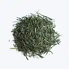 Sencha (middle-grade tea) is the most popular tea in Japan that accounts for more than 80% of total tea production.[15][17] It is produced by the Uji Method. Tea leaves are picked from areas with direct sunlight and will undergo steaming and rolling afterwards. It has a unique taste of sweetness with slight astringency.[14]