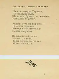 In 1966 a collection of songs of the Kuban Cossacks published in Krasnodar included the text of "Shche ne vmerla Ukraina", the Ukrainian National Anthem, which at that time was banned in Ukraine.[12]