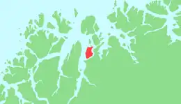 Uløya (Norwegian) or Ulisuolu (Northern Sami) is an island in Troms og Finnmark county, Norway. The island is situated on the east side of the Lyngen fjord and it is divided between Skjervøy and Nordreisa municipalities. The island has an area of 78 km2 (30 sq mi), and the highest point is Blåtinden at 1,142 m (3,747 ft). The population (2001) on the Skjervøy part of the island is 29,[1] and the population (2001) on the Nordreisa part is 65.[2] The two sides of the island are not connected by road.