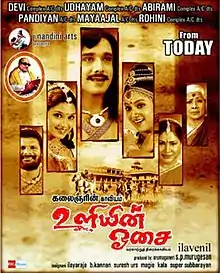 Uliyin Osai (transl. The Sound of Chisel) is a 2008 Indian Tamil-language historical romance film written by Ilavenil in his directorial debut.[1] It is based on M. Karunanidhi's short Sarapallam Chamundi, published in the magazine Murasoli.[2] The film stars Vineeth, Keerthi Chawla and Akshaya, while Sarath Babu, Manorama, Kovai Sarala, and Ganja Karuppu play supporting roles. The soundtrack album and background score were composed by Ilaiyaraaja with cinematography by B. Kannan and editing by Suresh Urs. The film released on 4 July 2008.[3]