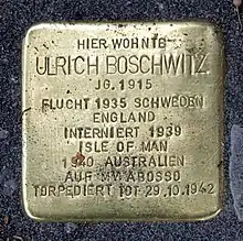Boschwitz was the son of Salomon ‘Sally’ Boschwitz and Martha Ella, née Wolgast. Salomon was a wealthy Jewish factory owner who had converted to Christianity, in 1911, when he married Martha. Martha was descended from a prominent Lübeck patrician family, the Plitts, and had studied painting in Berlin and Munich. Salomon served in the Imperial German Army in World War I, but died on 7 May 1915, from a brain tumour, leaving Martha to raise Ulrich and his elder sister, Clarissa, and to carry on Salomon’s business.[1]