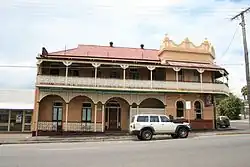 The hotel, situated on a corner site on the gentle slope of Brisbane Street, is a prominent landmark with the streetscape.[1]