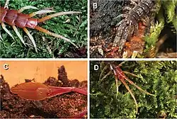 - ↑ Sombke, Andy; Müller, Carsten H. G. (Apr 2021). "When SEM becomes a deceptive tool of analysis: the unexpected discovery of epidermal glands with stalked ducts on the ultimate legs of geophilomorph centipedes". Frontiers in Zoology. 18 (1): 17. doi:10.1186/s12983-021-00402-3. ISSN 1742-9994. PMC 8056527. PMID 33879192.
