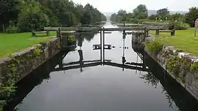 Although it is about 1.25 miles (2.0 km) from the River Leven estuary which is part of Morecambe Bay, the town of Ulverston was declared to be a port in 1774,[2] which allowed goods to be shipped to other canals without the payment of sea duty.[3] Ships of up to 150 tonnes could reach the shore at high water, and 70 vessels were registered there. Trade in slate and ore was growing, and canal mania was gripping the country. A local solicitor, William Burnthwaite. organised a meeting in July 1791 to consider ideas for a canal to improve access to the town. He estimated the cost at £2,000. This sum had been raised by May 1792, but by then the engineer John Rennie had produced proper plans for a ship canal, estimated to cost £3,084, including the construction of a sea lock. By October 1792, around £3,800 had been raised, and the proposers decided to proceed.[4]