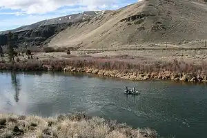 The Umtanum Ridge Water Gap was designated a National Natural Landmark in 1980.[4] The landmark is characterized by a series of steep-sided ridges in the Columbia River basalt which are cut through axially by the Yakima River. A water gap was cut by the Yakima River through anticlines named "Manastash Ridge" and "Umtanum Ridge". These anticlines are part of the Yakima Fold Belt near the western edge of the Columbia River Plateau.