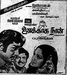 Unakkaga Naan (transl. I am there for you) is a 1976 Indian Tamil-language drama film produced by K. Balaji and directed by C. V. Rajendran. Starring Sivaji Ganesan, Gemini Ganesan, Lakshmi and Vennira Aadai Nirmala, it is a remake of the 1973 Hindi film Namak Haraam.[1][2] The film was released on 26 January 1976.[3]