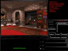 Under a Killing Moon was one of the largest video games of its era, with a budget of two million dollars[3] and arriving on four CD-ROMs (although some material was duplicated among the four to reduce the amount of swapping). The game combined full motion video (FMV) cutscenes with an advanced 3D virtual world to explore. Though action games with 3D environments and a first-person perspective had been popularized by first-person shooters such as Doom, it was very unusual at the time to see these characteristics used in an adventure game. It is notable that the game's 3D graphics did not use ray casting techniques like Doom, but true texture-mapped polygons that allowed players to look in all directions as well as duck, and ran in then-high resolutions of up to 640x480. The designers Chris Jones and Aaron Conners recalled they went to their programmers and said that they wanted the 3D movement of Wolfenstein, but also wanted to look closer to the quality of pre-rendered graphics of The 7th Guest.[4]