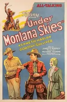 Under Montana Skies is a 1930 American western film directed by Richard Thorpe and starring Kenneth Harlan, Slim Summerville and Dorothy Gulliver.[1] It was produced and distributed by Tiffany Pictures, one of the leading independent studios in Hollywood.