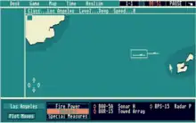 Sonar modeling is an important aspect of the game. Targets do not appear as plots on a map, at least not at first, but only as an arrow pointing in the direction of the sound. The target can be more precisely located as the submarines move about, allowing the sounds to be triangulated. Active sonar is also supported, normally used in short bursts to quickly determine the exact location of a target. Once found, they can be targeted by selecting them and then selecting one of the weapons on the boat.