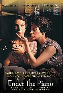 Under the Piano is a 1995 television film directed by Stefan Scaini and features Kevin Sullivan as executive producer. The film follows the story of one woman’s overwhelming faith in her talented but emotionally defenceless sister. The film starred Megan Follows and Amanda Plummer as the sisters and opera singer Teresa Stratas as their mother.[2] Stratas won a Gemini Award as best supporting actress for her performance.[3]