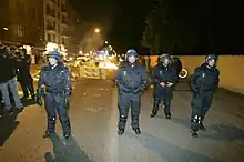 The operation had an international scale, and has even been qualified by Le Monde diplomatique as "a 'laboratory experience' in police repression." Twenty Swedish police vehicles were brought over from Malmö, and five senior Swedish police officials invited for observation.[7] Witnesses have claimed that plainclothes police agents, wearing earphones, circulated in the scene of the riots, speaking foreign languages (German, French and English).[7] Asked by a Danish newspaper, the Copenhagen's police's spokesman denied the presence of active units from others countries. However, he recognized that, "if there had been" some, it was "in quality of observers".[7] Other analysts noticed that the same tactics used by the French police during the 2006 students' protests against the First Employment Contract (CPE) had been used: special units of undercover agents moving around the demonstrators, and suddenly grabbing those who seemed to be the leaders.[7] Since the Internet had been used by the demonstrators to coordinate their movements, hour by hour, informing about the police's whereabouts, a new priority of the police forces, according to Le Monde diplomatique, was to pirate this information.[7]
