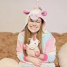 The unicorn trend is a 2010s fad where individuals design, produce and use consumer objects adorned with a rainbow and/or vibrant color palette; typically composed of pastel or highly saturated colors such as pink, violet, yellow, blue and green.[1] This tendency has gained in popularity since 2016, especially among millennials. Some in this generation associate the unicorn with a return to childhood and an escape from reality. Its popularity was also augmented by the influencer and celebrity economy of social networks. Some examples of consumer products that are commonly decorated in this style are phone cases, clothing, water bottles, tote bags, makeup and food.[2]