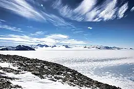Union Glacier (79°45′S 082°30′W / 79.750°S 82.500°W / -79.750; -82.500), is a large, heavily crevassed glacier which receives the flow of several tributaries and drains through the middle of the Heritage Range, Ellsworth Mountains, Antarctica. The glacier drains from the plateau at Edson Hills on the west side of the range and flows east between Pioneer Heights and Enterprise Hills. Union Glacier was mapped by U.S. Geological Survey (USGS) from surveys and U.S. Navy (USN) air photos, 1961–66. The name was applied by Advisory Committee on Antarctic Names (US-ACAN) in association with the name Heritage Range.[1]