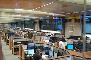 The Union Pacific Harriman Dispatch Center is located at 850 Jones Street in downtown Omaha, Nebraska. Called "the Bunker" by some, the Harriman is Union Pacific's rail traffic control headquarters, where the movement of more than 850 trains and nearly 36,000 [1] miles of track across the country is controlled and monitored. Originally a freight depot,[2] the building was redeveloped in the early 1990s as a way to unite 10 regional dispatch centers the UP once ran across the country.[3]