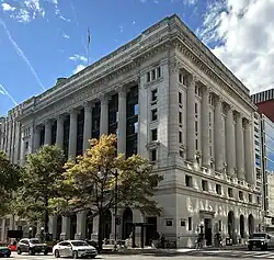 The Union Trust Building is a nine-story office building, located at 740 15th Street, Northwest, Washington, D.C. It was constructed for the Union Trust Company between 1906 and 1907. The building is listed on the National Register of Historic Places, and is a contributing property to the Financial Historic District. It sits on the location of Wormley's Hotel, owned by James Wormley, a free-born black man, where the Wormley Agreement was penned, which led to the Compromise of 1877 and the election of President Rutherford B. Hayes. It has been substantially expanded twice, first in 1927 and then converted to a modern office building in 1983.[1]
