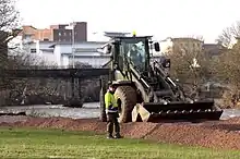 RE Plant Operators construct foundations for a new bridge in Workington after floods