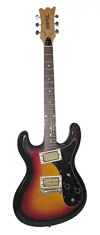 The Univox Hi-Flier is an electric guitar marketed and sold by Univox (later Unicord) from roughly 1967 to 1980. With its reversed offset body, the Hi-Flier has an intentional resemblance to the Mosrite Ventures model. A bass version of the Hi-Flier was also available.