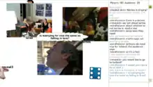 Audience members (also known as "chatters") do not log in – they simply follow a link from an email or another web page, and arrive at the stage which loads as a web page in their browser. They do not see any of the player tools, but they see and hear everything that the players are creating on the stage, and they can chat in the text chat along with the players. Audience chat appears grey and silent, while player chat is black and spoken aloud.[8]