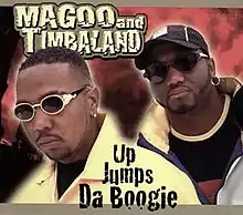 "Up Jumps da Boogie" is the debut single by hip-hop duo Timbaland & Magoo (then known as Magoo and Timbaland), released on July 11, 1997, as the first single from their debut studio album, Welcome to Our World. The track features rapper Missy Elliott and R&B singer Aaliyah. The song peaked at No. 12 on the Billboard Hot 100 Singles chart, No. 1 on the Hot Rap Singles chart, and No. 4 on the Hot R&B/Hip-Hop Singles & Tracks chart.[1]