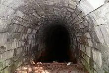 One example of the expansion of the Water Regale network was the optimisation of several ditch courses (the Dam Ditch, Upper and Lower Rosenhof Chutes), mainly during the 19th century, by the construction of so-called Wasserläufen (also Wasserüberleitungsstollen) or water tunnels. These enabled the distance travelled by the water to be significantly shortened.[5] It also guaranteed winter working, because the water running underground did not freeze up. In addition the maintenance cost of a short section of tunnel was much cheaper than that of a long ditch run. But a particularly important advantage was the higher discharge capacity. The tunnels descended the same height difference over a shorter distance and therefore had a steeper incline.[13] Initially the underground sections were laboriously hewn out with hammer and chisel. Later gunpowder was used as an explosive, making the construction of water tunnels considerably easier and faster.